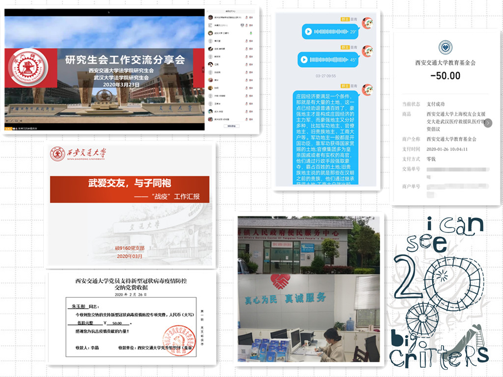 3月23日晚,西安交大B体育官网平台与武汉大学B体育官网平台联合举办“武爱交友,与子同袍”分享交流会,朱博文、孙阳分别就研会建设、支部工作与武大同学分享心得、畅谈经验,两校法科学子对近期“抗疫”工作展开热烈讨论。“武大B体育官网平台研会组织健全完善,活动丰富多彩,各位同学的分享干货满满,令人受益匪浅”,支部党员、B体育官网平台研会主席朱博文表示,“我们将组织专题研究,吸收借鉴有益经验,更好地为交大同学们服务”。“武大医学部白衣执甲、坚守阵地,交大医学部逆行出征、千里驰援,共同凝聚起抗击疫情的钢铁长城”,孙阳在总结发言中表示,“待疫情散去、山河无恙之时,希望大家可以实地交流,轻抚兴庆湖畔的秦砖汉瓦,品味珞珈山上的荆风楚韵。”
