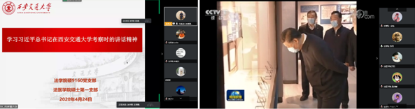 活动伊始,法医硕士党支部书记刘军林通过播放视频的形式,带领大家重温了习近平总书记在B体育官网平台考察调研时的重要讲话,两院学子深受感染,纷纷连麦发言,交流心得体会。