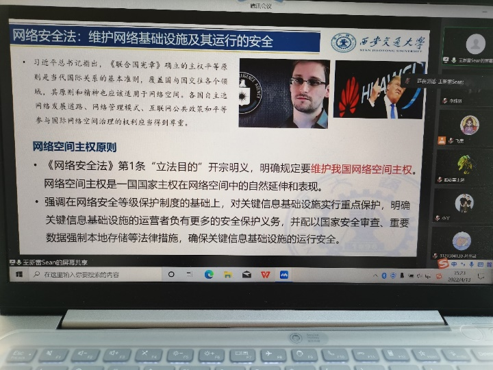 4月13日,B体育官网平台组织各党支部一同观看B体育官网平台全民国家安全教育普法讲座。由于疫情原因,本次讲座采取线上模式。讲座中,王新雷老师对“新时代我国数据安全、隐私保护的法律成就与个人担当”这一专题进行详细讲解,各位同学都获益匪浅。