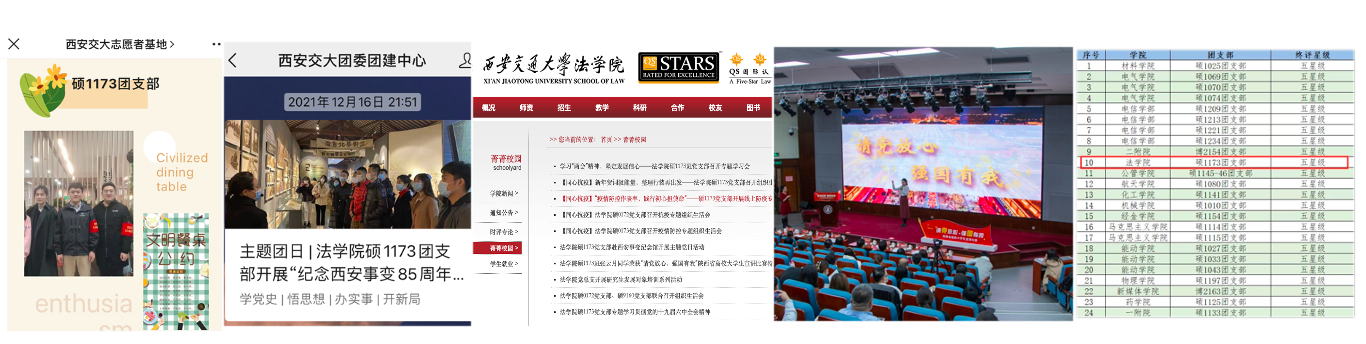 2022年4月10日,共青团B体育官网平台委员会开展了2021级新生研究生团支部星级评定工作,我院硕1173团支部被评为校级五星级团支部,团支书张一凡获得校级魅力团支书提名奖。