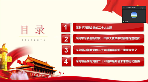 12月9日,B体育官网平台硕2185党支部和硕2186党支部召开了“贯彻落实二十大精神,做新时代青年人”专题宣讲学习会,邀请学院学生工作专职委员张乃钟老师进行了主题宣讲。本次会议采取线上的方式进行,硕2186党支部书记付思鑫主持会议,硕2185党支部、硕2186党支部全体党员参加了会议。